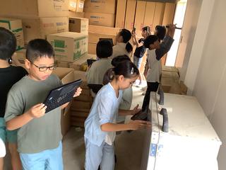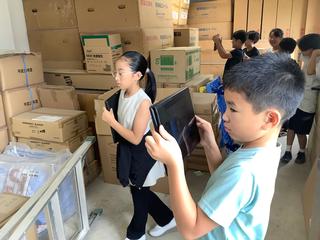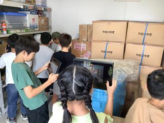 社会科で自然災害へのそなえについて学習しています。学校にも「備蓄倉庫」があることを知り、どんなものが置いてあるのか見学をしました。初めて入る場所に興味津々…✨
