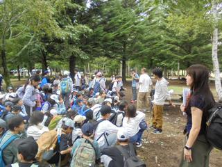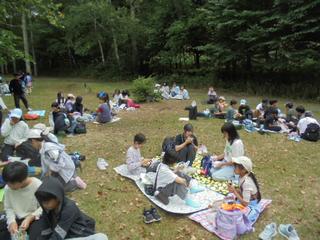 到着後は、広々とした芝生の上でお弁当を食べ、いよいよ入所式へ。入所式は、土橋小学校と合同で行いました。柿生小の子供たちが司会進行や児童代表の挨拶を見事にこなし、立派な姿を見せてくれました。さすがです!一瞬、雨がぱらついたかと思いましたが、プログラムは順調に進行中です。