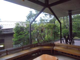外は雨が降っていますが、気温が低いことと周囲が森に囲まれているおかげで、湿気が程よくサラッとした清々しい空気が広がっています。自然の中に身を置くと普段の喧騒を忘れて心が落ち着くような気がします。