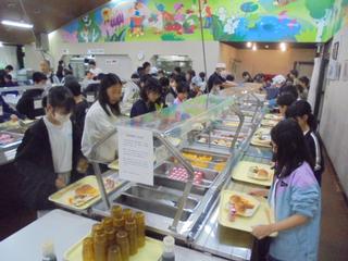 そして、今日の朝食はパンの洋食。あっという間におかわりじゃんけん大会がスタート!全クラスで見事に盛り上がりました。おかわりに、長蛇の列もできていました。さすが成長期!もりもりたくさん食べてほしいです。