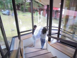 おはようございます。今日は自然教室の最終日。所内から見える景色は、霧雨がしっとりと木々を潤し、森の中にいるみたいにきれいです。