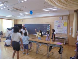 今日は、1年生から6年生までのたてわり活動が行われました。ドッジボールやフルーツバスケットといった定番の遊びから、卓球ボール運びや風船バレーボールといった室内で楽しめる工夫されたゲームまで、6年生が中心となって企画してくれました。