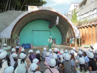 5年生が尻手黒川道路のトンネル工事現場を見学をしました。子供たちはヘルメットをかぶり、工事関係者の方の案内で安全に配慮された中での見学です。