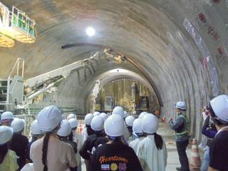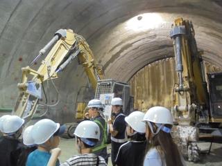 見学では、普段はなかなか見ることのできない掘削中の坑口や掘削機・吹付機の実演を間近で見ることができました。また、濁水処理の様子も見せていただき、工事が環境に配慮して進められていることも学びました。