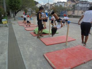そんな中、4年生が鉄棒で「逆上がり」に取り組んでいる様子を見かけました。補助紐を使ったり、坂道の踏切台を使ったりとそれぞれの子どもに合わせた工夫をしながら、一生懸命に挑戦していました。担任も子供たちに寄り添い、熱心に声をかけてサポートしていました。