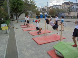 「もうすこし!」と校庭のすみで (4年鉄棒運動)