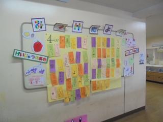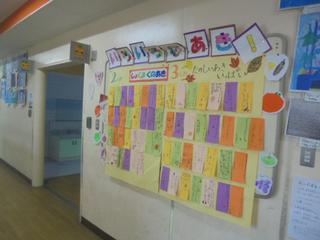 子供たちが「秋にしたいこと」や「楽しみにしていること」を書いた短冊が、ずらりと掲示されていました。