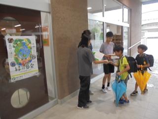 生き物・園芸委員会の活動として、朝の時間に「緑の募金」を行っています。