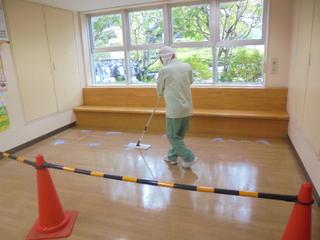 その後を引き継ぐように、用務員がワックスがけと窓ふきを行い、ホールは見違えるほどきれいになりました。玄関横のスペースが、生まれ変わったようです!