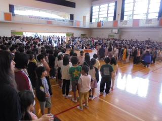今朝はアリーナで音楽朝会が行われました。朝早くからたくさんの保護者の皆さまにお越しいただき、本当にありがとうございました。
