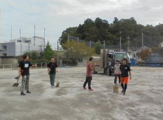放課後は、職員総出で運動会に向けた校庭整備を行いました。今日はなんと、トラック2台分のダスト(整地用の砂)を撒きました!