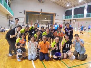 私はというと、なんと監督バッチをつけてベンチに座らせていただきました!バレーは「見る専門」なのですが、コートに立つ選手の姿に、思わず応援する声に力が入ってしまいました。応援団の方々は、イラストボランティアさんが作ってくださった「かきお君・かき子ちゃんうちわ」を振りながら熱い声援を送りました。