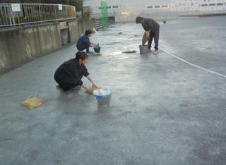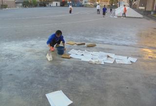 今朝学校に来ると、グラウンドにはまだ大きな水たまりが残っていました。しかし、職員がスポンジやバケツを手に、一つひとつ丁寧に水を吸い取ってくれました。朝早くからの作業となりましたが、「子供たちに最高の一日を」という思いを胸に、力を合わせて準備を進める姿に、改めて本校職員のチームワークのよさを感じました。