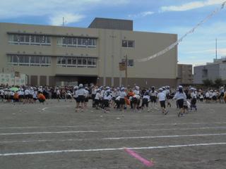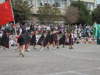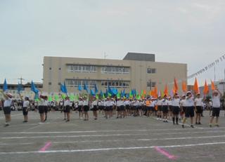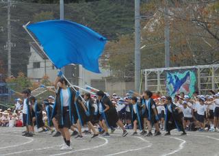 その後、応援団長の力強い言葉に続いて、スポーツ委員会の児童による大きな垂れ幕が掲げられました。