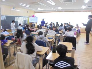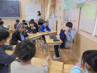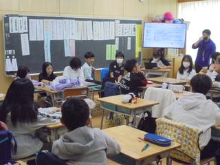 6年生の外国語の学習に、5人のALT(外国語指導助手)の先生方が来てくださいました。国は、アメリカ、フィリピン、イギリスと、さまざまな地域から集まってくださいました。いつもの教室が、まるで国際交流の場のような雰囲気に包まれました。