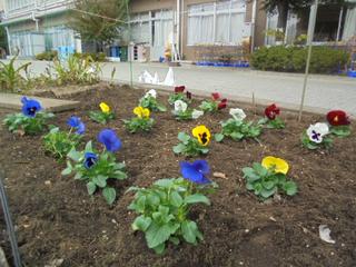本日、ガーデニングボランティアの皆さんが来校され、パンジーの苗を植えてくださいました。