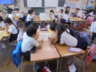 当日は、教室に入りきれないほど多くの先生方にお越しいただき、子供たちの学びに熱いまなざしが注がれていました。その中でも、子供たちは落ち着いて、いつも通り元気いっぱいに学びに向かう姿を見せてくれました。