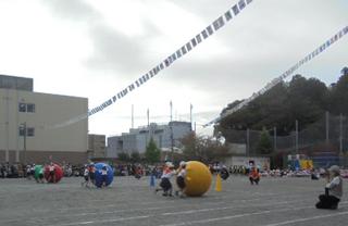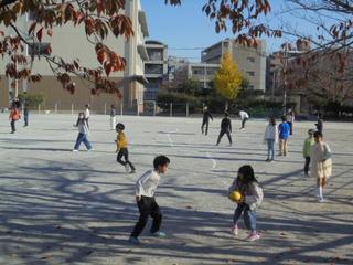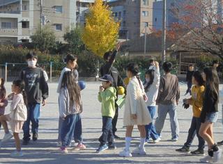 校庭では、子供たちが元気にドッジボールをする姿が、秋の青空 と 赤や黄色の紅葉 と重なり、とてもすてきな光景でした。歓声も響き渡り、見ていて ほのぼのする 時間となりました。