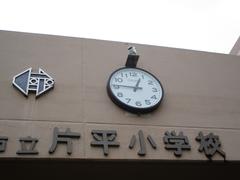 卒業記念寄贈のピロティ上の大きな時計が夏休み明けに壊れてしまいました。30年の間、片平小学校の時を刻んできた大時計は、残念ながら経年劣化で修理が不能。このたび、新しい時計と交換いたしました。長い間、みんなに時刻を知らせてくれた大時計に感謝の気持ちでいっぱいの子どもたちでした。