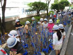 川崎市の全国都市緑化かわさきフェアの取組の一環で、今年も3年生が花いっぱい運動に参加しました。学校に送られてきた小さなビオラのプラグ苗(成長初期の幼苗)を一人1つずつやさしくポットに植え替えます。自分たちが育てた花 が、学校や片平のまちが暮らしやすくなっていくことを実感できる機会にしていきたいです。学校へお越しの際には、ぜひ3年生の育てているお花をご覧ください!