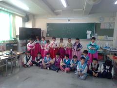 その後、音楽、言葉、衣装、伝承遊びのグループに分かれて韓国の文化を学び、体験させていただきました。