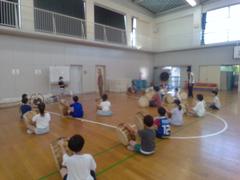 校長先生のご紹介で体幹トレーニングの出前授業をおこないました。プレイルームにマットを敷き、笛の合図に合わせながらいろいろな動きをしました。「あ~、楽しかった!」と、どの児童もとても楽しく身体を動かしていました。