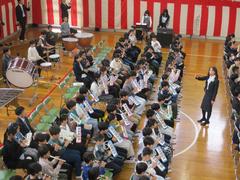 卒業式の練習に向けて取り組んでいるのは5年生。退場曲である「威風堂々」を6年生が全員退場するまで演奏し続けます。卒業生が自信をもって、大空に羽ばたいていけるように最後まで心を込めて演奏しようと、心ひとつに練習に励んでいます。