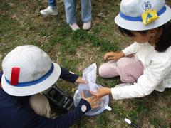 1年生はいきもの(虫)と仲良くなるために、白鳥公園へ虫探しに出かけました。友達と網を仲良く使いながら虫を捕まえます。バッタ、カマキリ、テントウムシなど見つけることができました。採集した虫はその場で逃がしてあげたり、しばらく飼育したりしています。昆虫への興味を高める1年生でした!