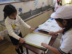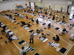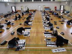 3年生は、長い下敷きを敷いて、画仙紙に書くことも初めてでした。