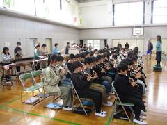 卒業式の練習に向けて取り組んでいるのは5年生。退場曲である「威風堂々」を6年生が全員退場するまで演奏し続けます。卒業生が自信をもって、大空に羽ばたいていけるように最後まで心を込めて演奏しようと、心ひとつに練習に励んでいます。