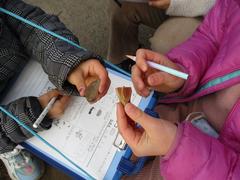 1年生は季節の変化に応じて公園探検に出かけています。今回は冬。冬のビンゴゲームでは、たくさんの冬の発見をしました。発見したことを、目を輝かせて先生や友だちに伝える姿がたくさん見られました。もっと片平の公園が好きになった1年生です。