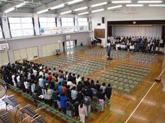 最後は体育館で合奏「情熱大陸」合唱「いのちの歌」を披露しました。