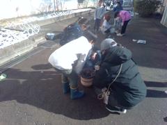 慣れないマッチを使い新聞紙に火をつけ、うちわで懸命にあおぎ何とかどのグループも火を起こすことができました。