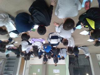 八ヶ岳少年自然の家に到着しました。「空気がうまい」という感想を言う子がいたり、「寒い」と言いながら上着を羽織ったりする子がいたりしました。予定時刻よりも早く到着したので、早速クラス集合写真を撮りました。