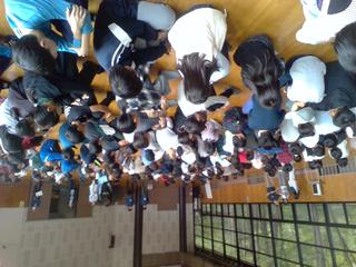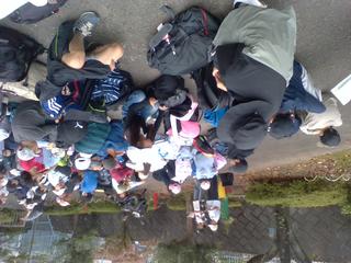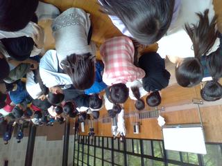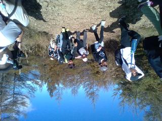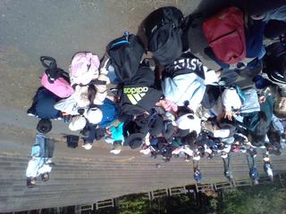 八ヶ岳少年自然の家に到着しました。「空気がうまい」という感想を言う子がいたり、「寒い」と言いながら上着を羽織ったりする子がいたりしました。予定時刻よりも早く到着したので、早速クラス集合写真を撮りました。