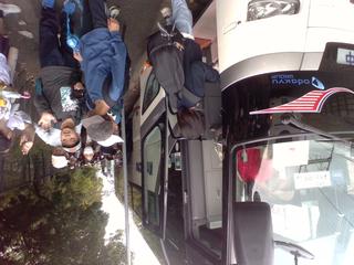 保護者の皆様、見送りありがとうございました。職員や保護者など、多くの方々の見送りを受けて、いざ出発!