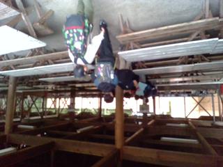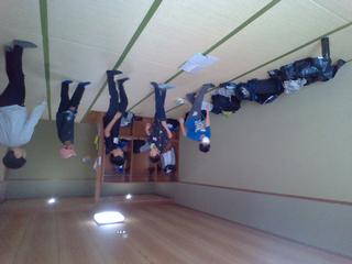 部屋の班で、施設内を探検し、これからの活動場所の確認をしました。「ぼくたち男子が使う第1浴室だ」「ここにシーツと枕カバーがおいてある」「みんなで揃って行動するんだよ」「星空観測をするアストロハウスだ」「ゴールの自由広場だ」