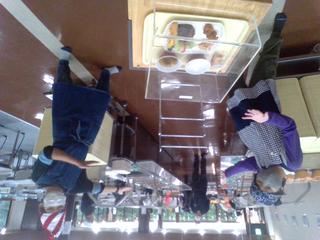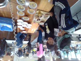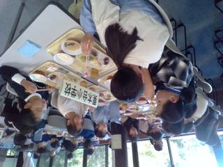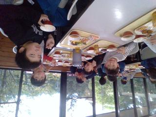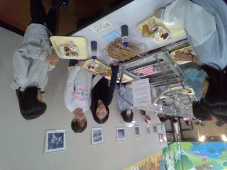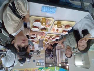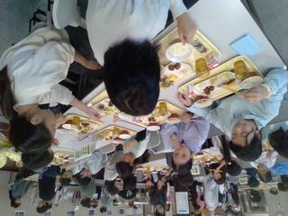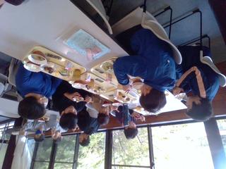 みんなで仲良く昼食タイムです。「みんなで食べるお弁当も美味しいけど、そろそろ、おうちのご飯が食べたいなあ」