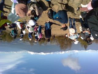 「登山道、厳しすぎだよ」「もう、無理だー」という弱音も聞こえましたが、「もう少し頑張ってみようよ」「荷物持ってあげるよ」「もうすぐ頂上だよ。さあ、もうひとふんばり」と、仲間を励ます声もたくさん聞こえてきました。仲間想いのくりっ子たちです。