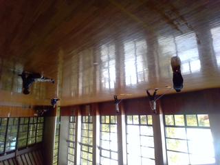 まずは、自分が使った布団をきれいにたたんで押し入れにしまい、シーツを片付けました。自分たちの部屋の中をほうきではいたり、共有部分をぞうきんでから拭きをしたりしました。「次の人が気持ちよく使えるように」という意識で、丁寧に清掃に取り組みました。