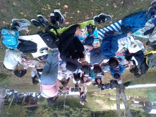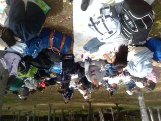 いこいの森で昼食です。部屋の班で食べました。美味しいお弁当、ありがとうございました。