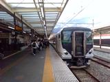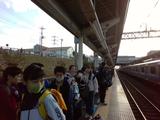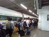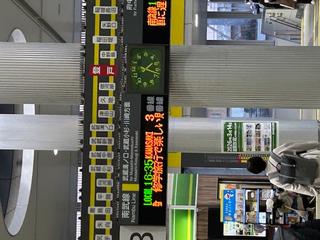 登戸駅で。添乗員さんと駅員さんが、乗車へ向けて確認。JRの電光掲示板に心遣いを感じます。そして、いよいよ乗車。