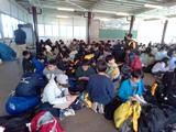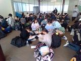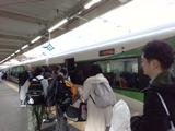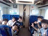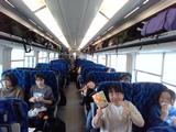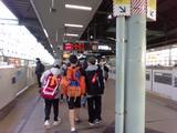 専用電車を待っている間にふりかえりを書いています。電車が到着し、いよいよ電車へ乗り込み川崎へ出発です。