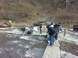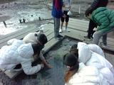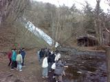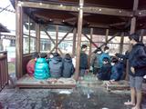 湯元源泉で足湯体験と10円玉を源泉に浸してみると・・・、それから、雪も見たり、触ったりできました。