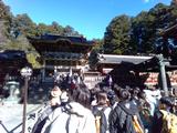 まずは、輪王寺。学年写真を撮り、東照宮内の途中までは、ガイドさんの話をバスの号車の3グループに分かれながらの見学となります。