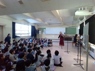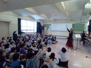 子どもたちは、二人の先生が演奏している姿をよく見たり、演奏に合わせて体を動かしたりしながら、音楽鑑賞を楽しんでいました。
