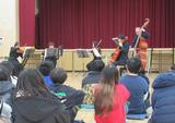 2月2日(月)弦楽器鑑賞教室が行われました。年が明けてから、合唱鑑賞教室、熱田先生の合唱指導と、たくさんの洗練された音楽を聴く機会がありました。弦楽器鑑賞教室では、美しい弦楽器の演奏に合わせて、打楽器を演奏させてもらったり、一緒に歌ったりする機会がありました。