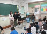家庭科「食べて元気!ご飯とみそ汁」の学習の一つとして、和食について勉強しました。鎌倉にある料亭から料理人の方にお越しいただきました。和食の基本である出汁の話、そして、最後は、大きな昆布やたっぷりのかつお節から取った「黄金の出汁」を試飲しました。漂う出汁のよい香りと芳醇な風味に「早く飲みたい!」と目をきらきらさせ、いざ口にするとその美味しさに目を丸くしていました。みそ汁の作り方を覚えて、ぜひ家庭でも実践してほしいです。