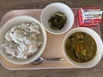 麦ごはん 大豆ミートのドライカレー キャベツとじゃこの炒め煮 牛乳