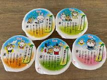 「七夕」の行事食です。そうめんは、昔から中国で無病息災を願い七夕に供えられていました。給食では、そうめんを天の川に見立てたそうめんスープにしました。ゼリー書かれた七夕にまつわる豆知識を興味深そうに読んでいる子が多かったです。